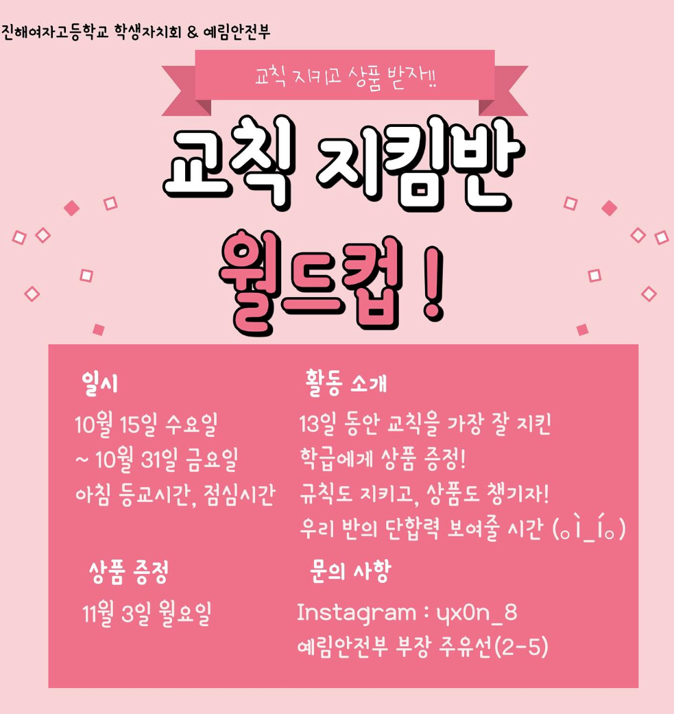 학생 자치회 예림안전부의 교칙 지킴반 월드컵 !