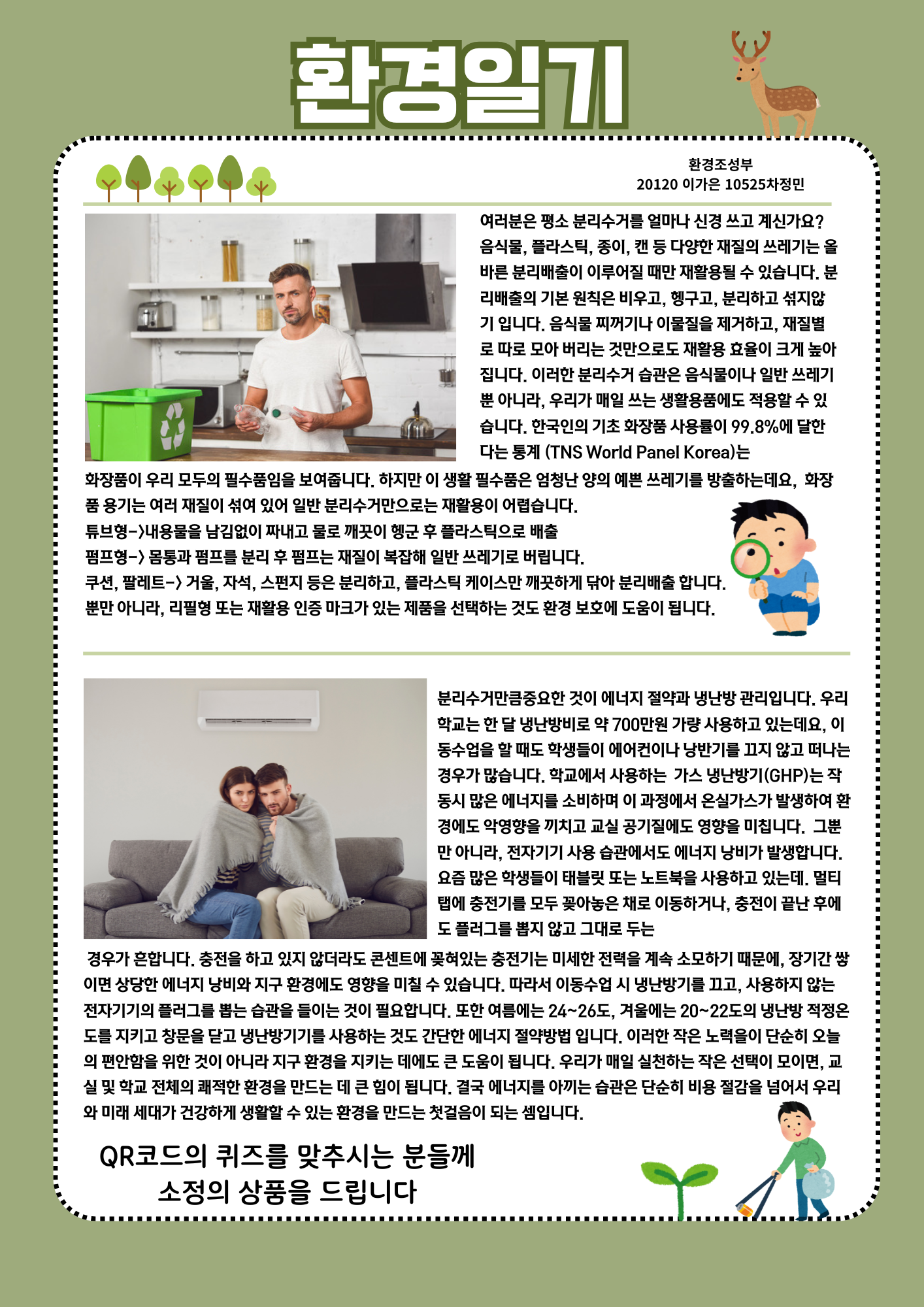 11월 7일에서 11월 말까지 환경조성부에서 환경신문 배부 행사를 진행했습니다! 분리배출과 관련한 다양한 지식들을 전달하고 필요성을 강조했습니다.