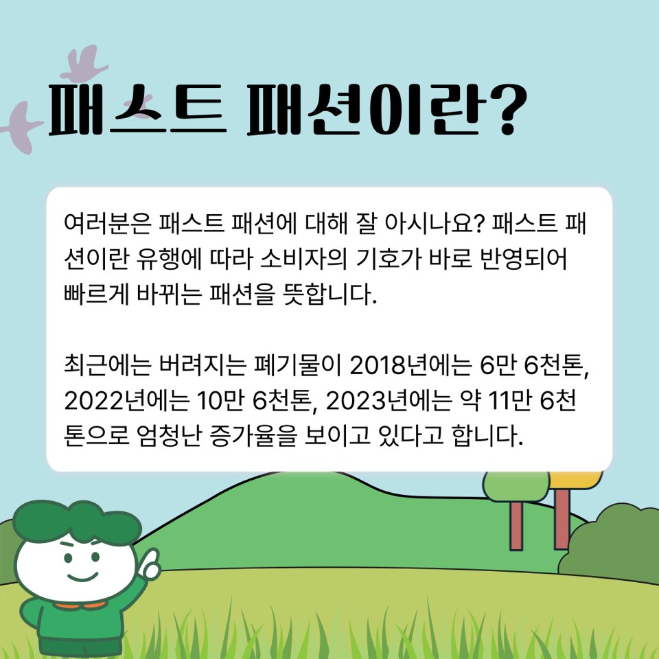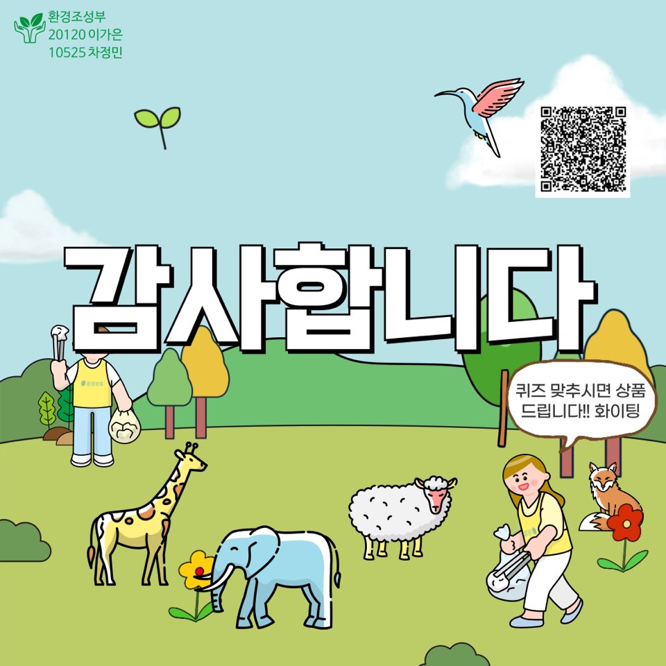 환경에 대한 정보를 쉽게 전달하며 간단한 퀴즈로 학생들의 정보를 구체화시켰습니다.